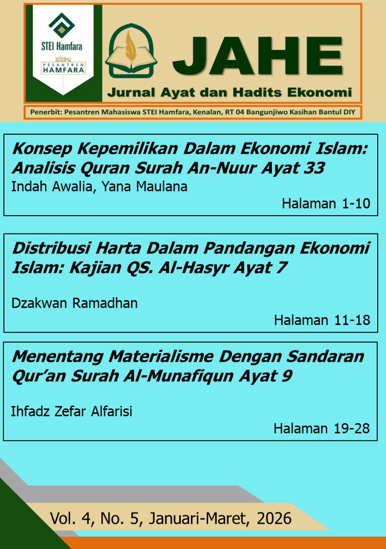 Edisi tahun ke-4 nomer 5 pada Januari-Maret ini membawa semangat menyongsong bulan Ramadhan 1447 H dengan motivasi spiritual yang kuat karena liLlaahi... Semangat dakwah ekonomi Islam dengan tampilan sebagaimana tersaji di artikel-artikel ini, sekaligus sebagai wahana belajar mensyiarkan tsaqofah Islamiyyah. Artikel-artikel yang dipublis seputar ekonomi Islam kontemporer terutama hasil belajar mahasiswa di kelas-kelas Pesantren Hamfara dengan adapsi perkembangan zaman termasuk dalam penggunaan mesin bantuan kecerdasan. Motivasi ruuhiyyah masih kuat, mengingat, manusia sebagai alatnya Allah SWT memiliki tugas mulia mendakwahkan ekonomi Islam. Sebagai wasilah dalam dakwah, semoga upaya ini bisa membantu mendapatkan tujuan hakiki belajar, yaitu: menambah keimanan, untuk diamalkan, dan menemukan solusi. Aamiin... Wallaahu a'lam.....
